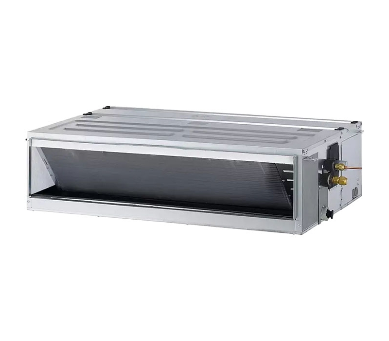 Канальный средненапорный инверторный кондиционер в тонком исполнении (высота блока всего 248 мм) в своем функционале имеет автоматический выбор режима (кондиционер контролирует температуру воздуха в помещении в автоматическом режиме, изменяя производительность компрессора, а также режим работы), режим Комфортный сон. Встроенный дренажный насос.