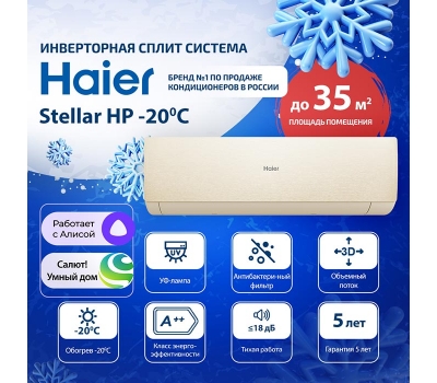 Серия кондиционеров Stellar HP от Haier представляет собой оптимальное решение для поддержания комфортного климата в вашем доме. Используя инверторный компрессор, эти сплит системы автоматически регулируют скорость работы в соответствии с температурой в помещении, обеспечивая экономию энергии до 40% и минимальный уровень шума.